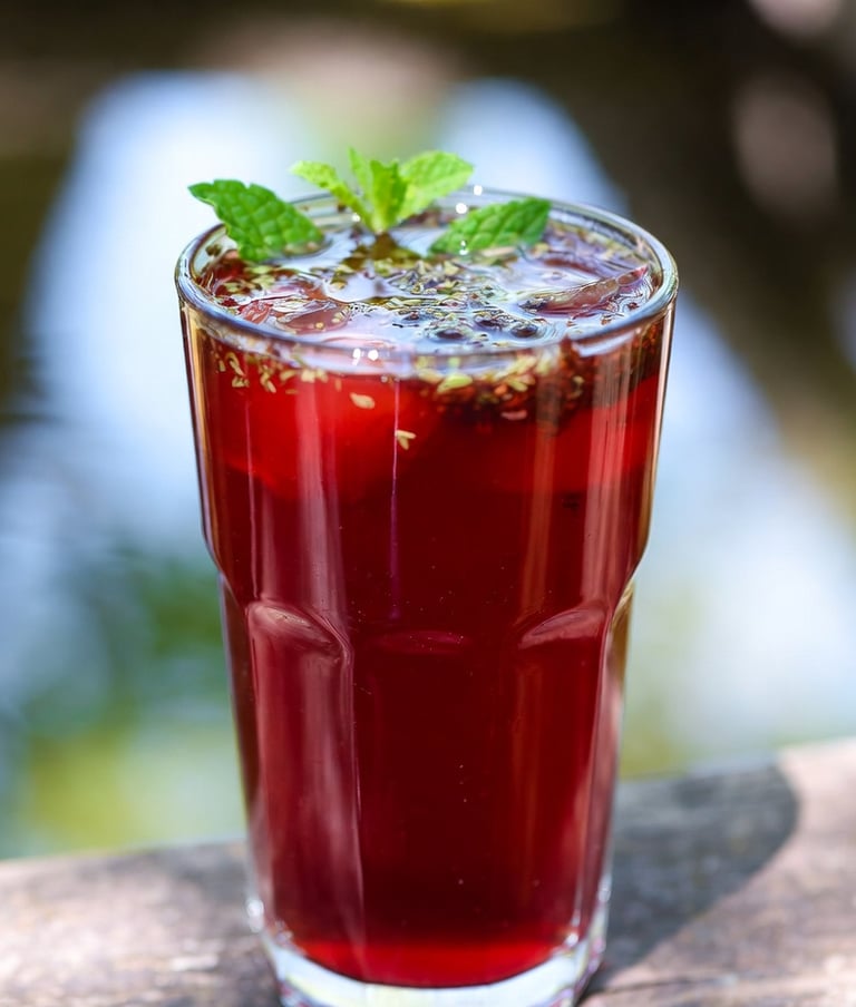 Refrescante bebida preparada con flores de jamaica y hierbas aromáticas cultivadas en la región. Una explosión de color rubí que hidrata y conecta con la biodiversidad de Xochimilco.